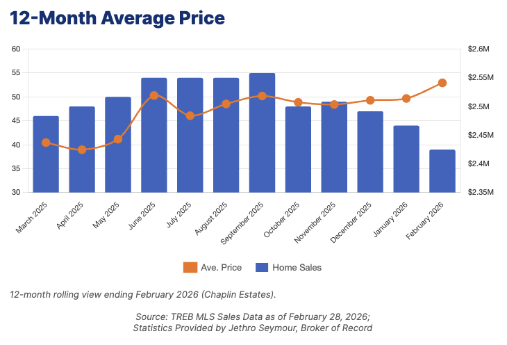By Jethro Seymour | The Seymour Team February brought no closed sales to Chaplin Estates — but that's not the story. With only 7 active listings and a 12-month rolling average of $2,541,148 across 39 sales, this remains one of Midtown Toronto's most tightly held and consistently valued neighbourhoods. A quiet month in a small market is normal. The fundamentals are intact and spring is around the corner. Missed the January recap? Read the January 2026 Chaplin Estates Market Report here. The Real Picture: Values Rising