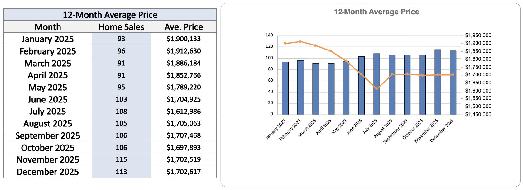 Average home prices dropped to $1,406,200--a 5.6% decrease from $1,489,286 last December.