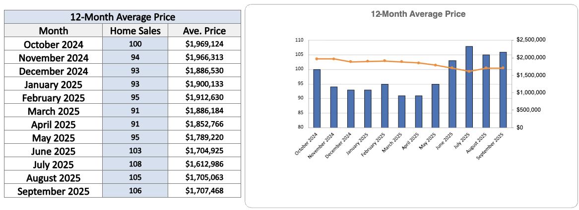 Average home prices rose slightly to $1,787,750, up 1.4% from last September’s average of $1,763,143.
