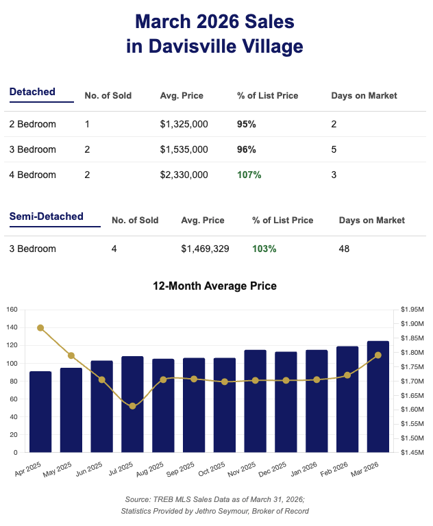 Davisville Village Home Sales Statistics for March 2026 by Jethro Seymour Top Midtown Toronto Agent