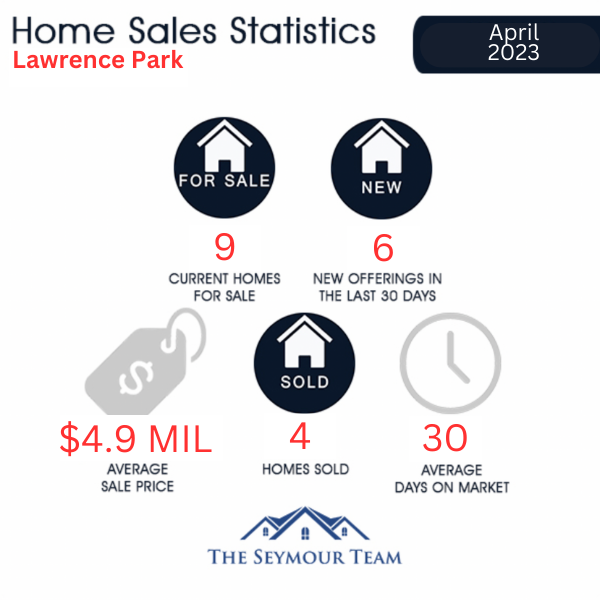 As of May 3, 2023, there are nine homes available in the Lawrence Park area, ranging in price from $2,688,000 for a detached home on Lawrence East Avenue (21 days on the market) to $11,350,000 for a detached home on Dawlish Avenue (93 days on the market).