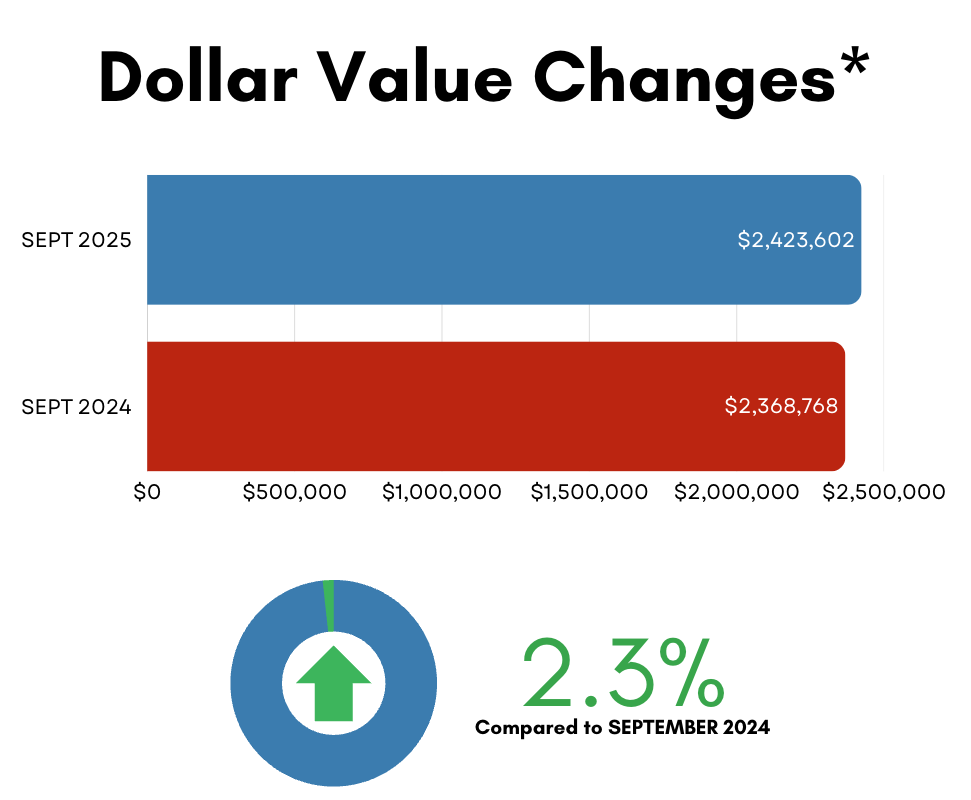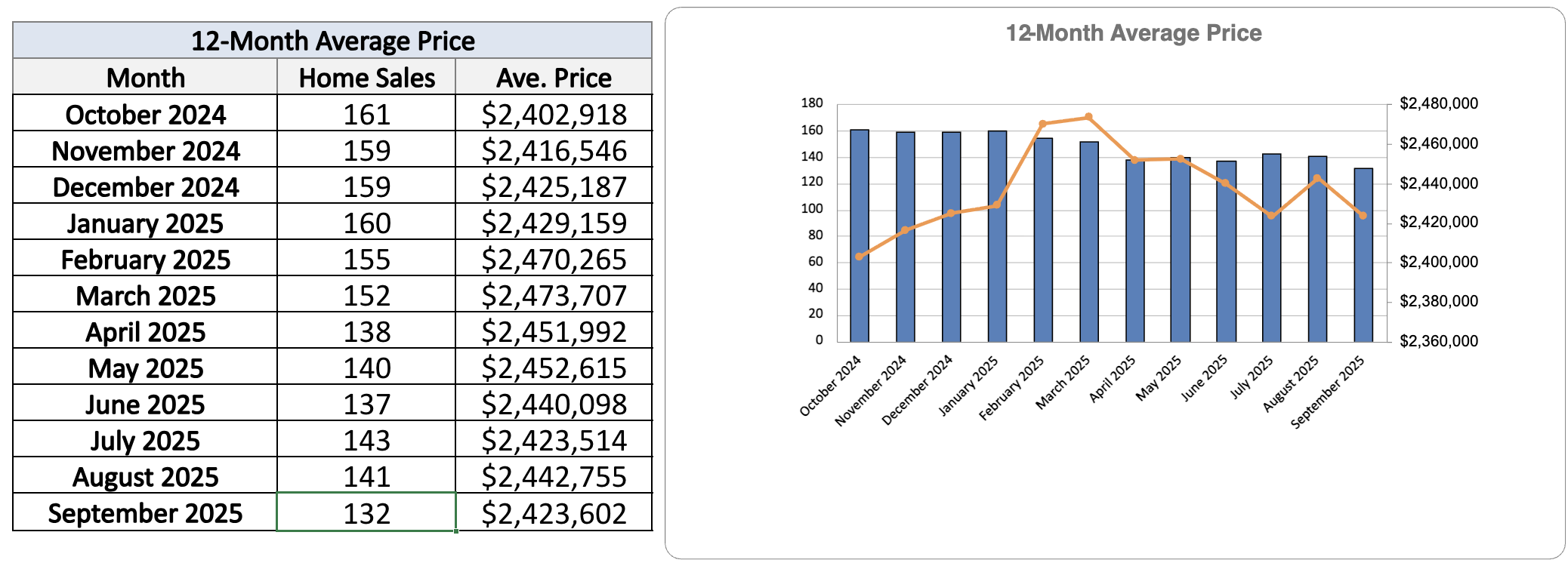 The average sale price was $2,400,750, a 4% decrease compared to September 2024 average of $2,499,929.