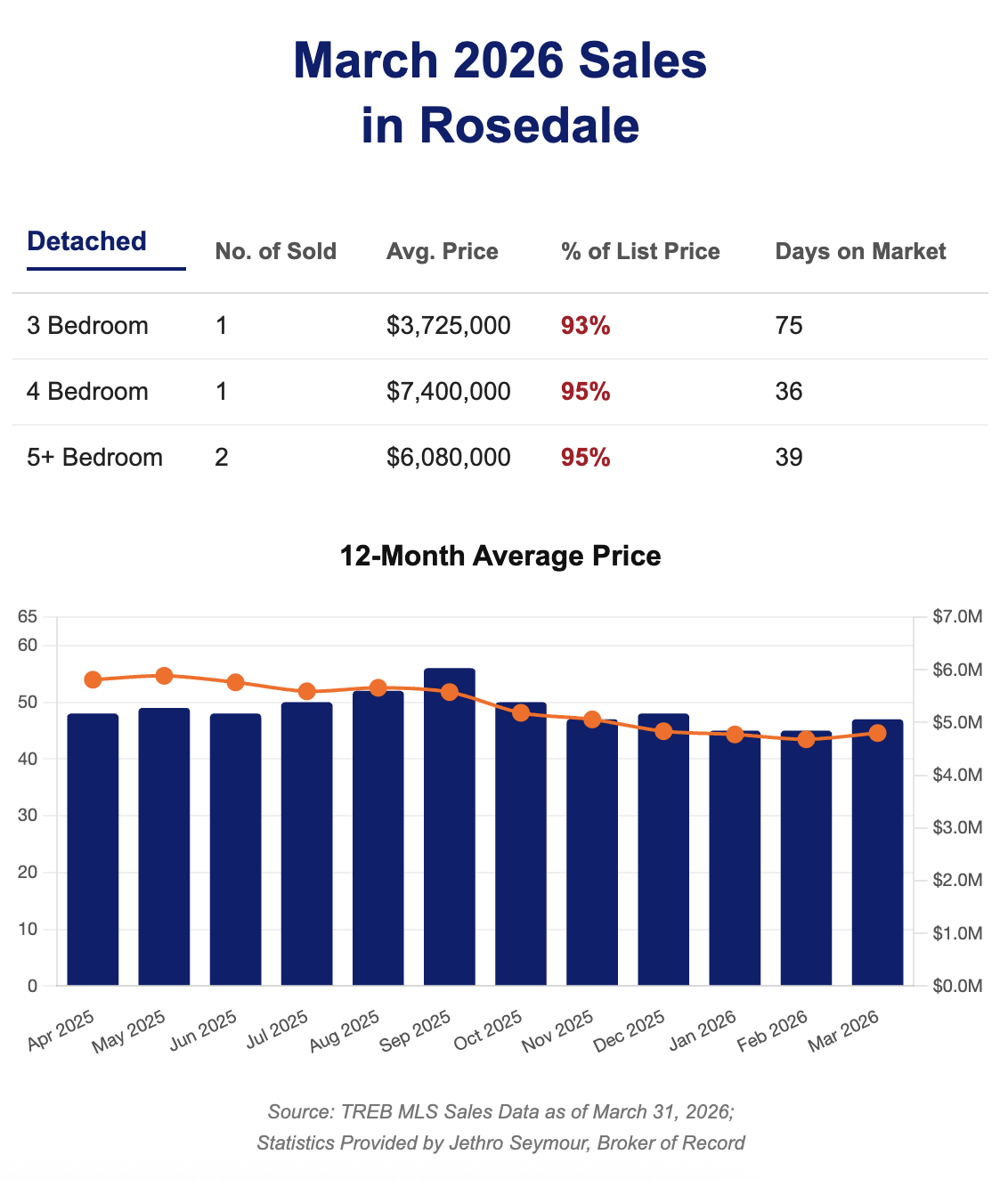 Rosedale Home Sales Statistics for March 2026 by Jethro Seymour Top Midtown Toronto Real Estate Broker