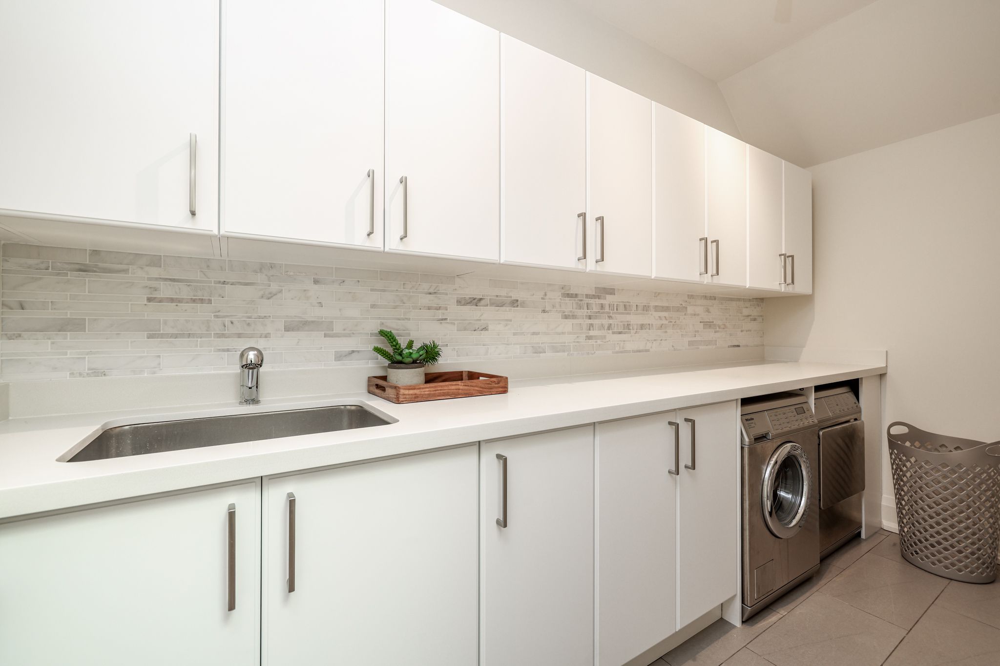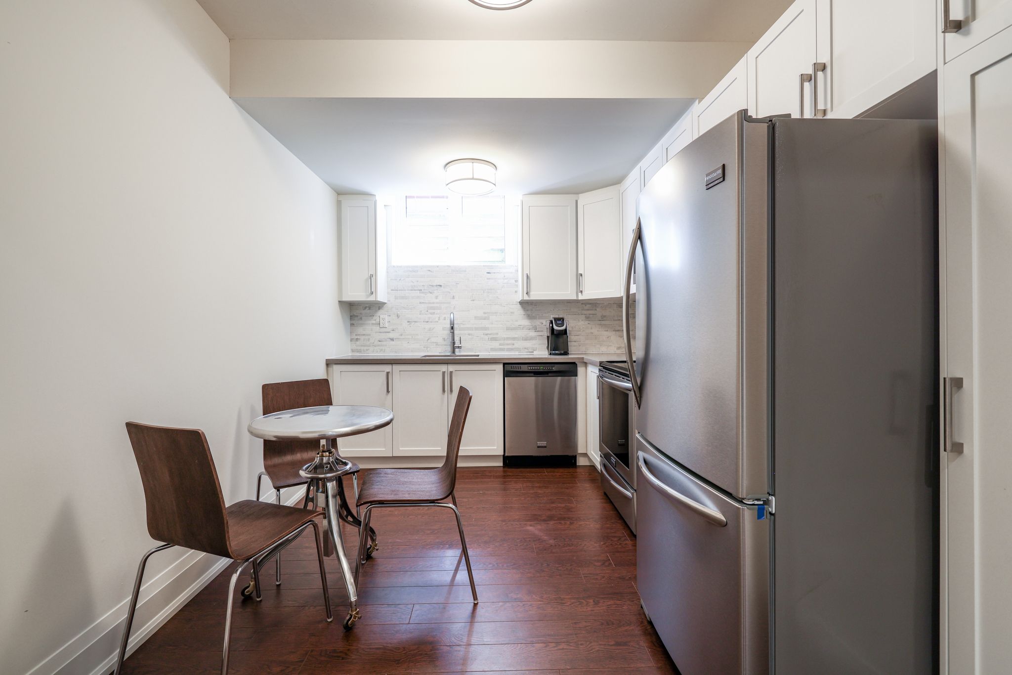 The lower level is where the home earns its versatility. Nearly 1,500 square feet of finished space with close to 9-foot ceilings — including a full second kitchen, a bedroom, a 4-piece bath, a sprawling recreation room, and dedicated laundry. A walk-out leads to the garden. It functions entirely independently. Whether for extended family, live-in help, or guests who prefer their own space, the lower level is a home within the home.